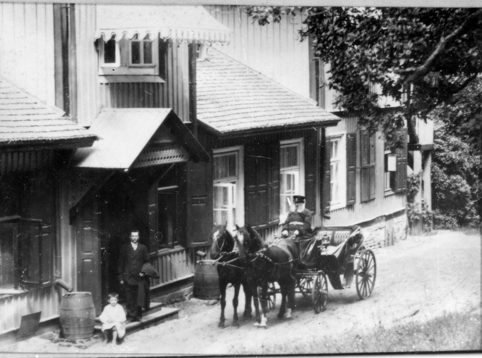 1867 m. A. Melnikovas įsigytoje žemėje pradėjo dvaro statybą. Ji buvo baigta 1868 m. Tais pačiais metais pastatyti ir pagalbiniai pastatai – mažesnis namas dvaro samdiniams bei arklidės ir vežiminė. Apie tai yra žinoma iš pastatų įvertinimo 1868 m. gegužės 8 d. akto. Jame pakankamai išsamiai aprašytas centrinis sodybos namas: sužinome, kad namas su dviem mezoninais pastatytas ant akmeninių pamatų, yra išvardinti namo langai ir jų išdėstymo tvarka, apdailos elementai. Trumpai aprašomi kambariai, jų dydis.